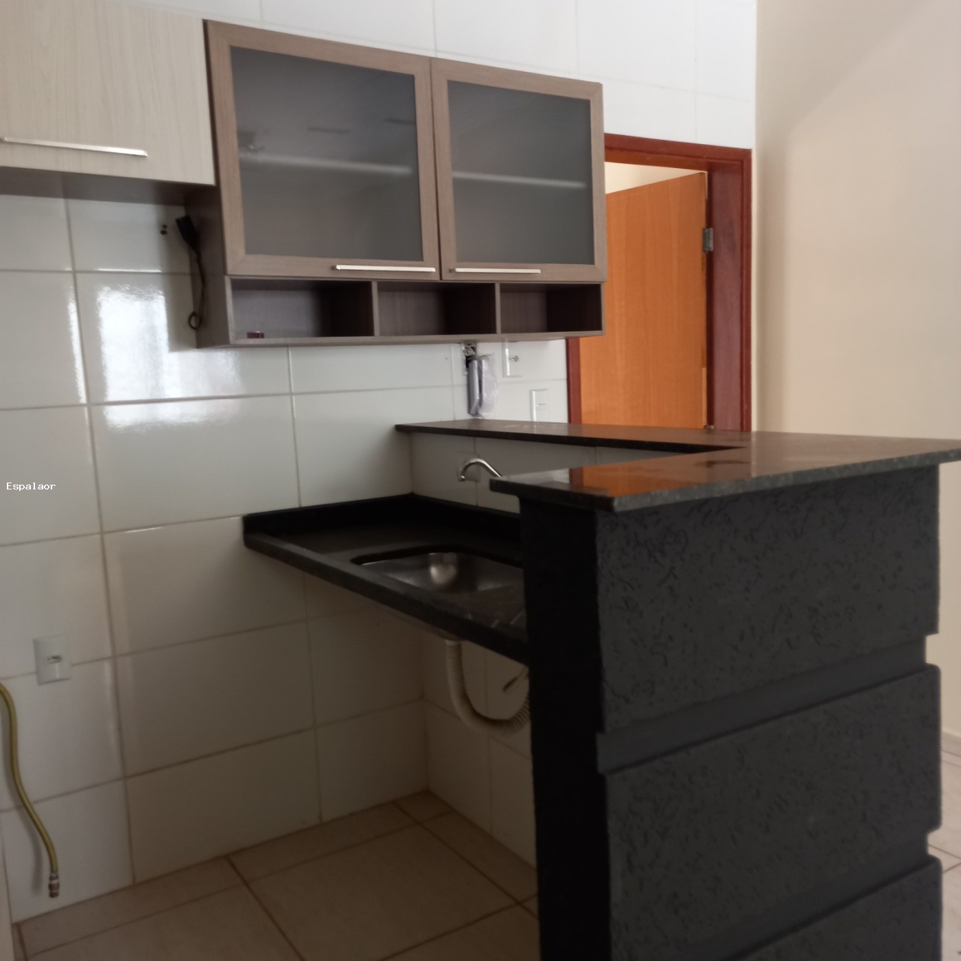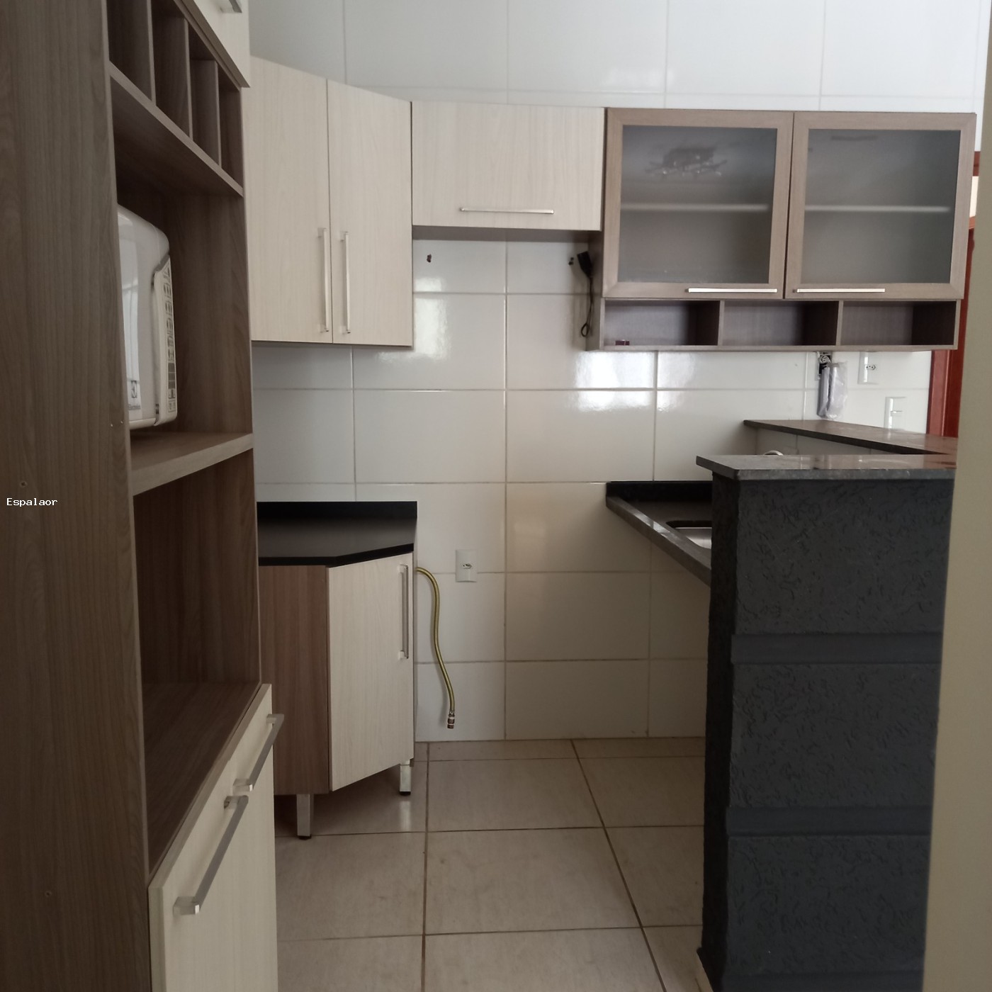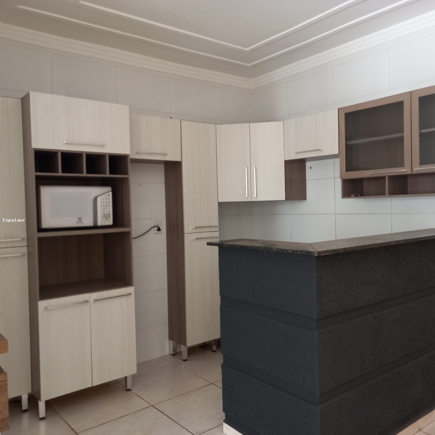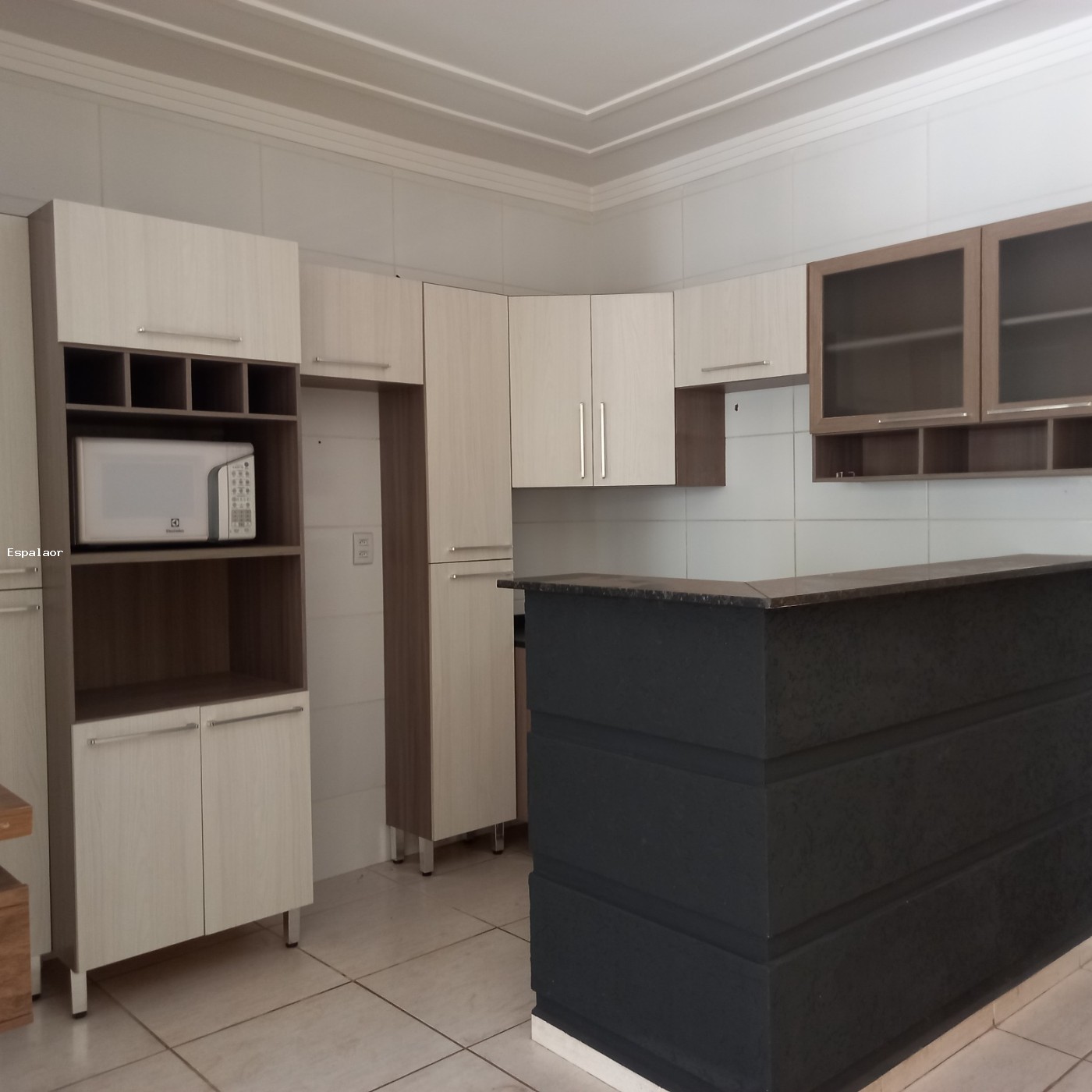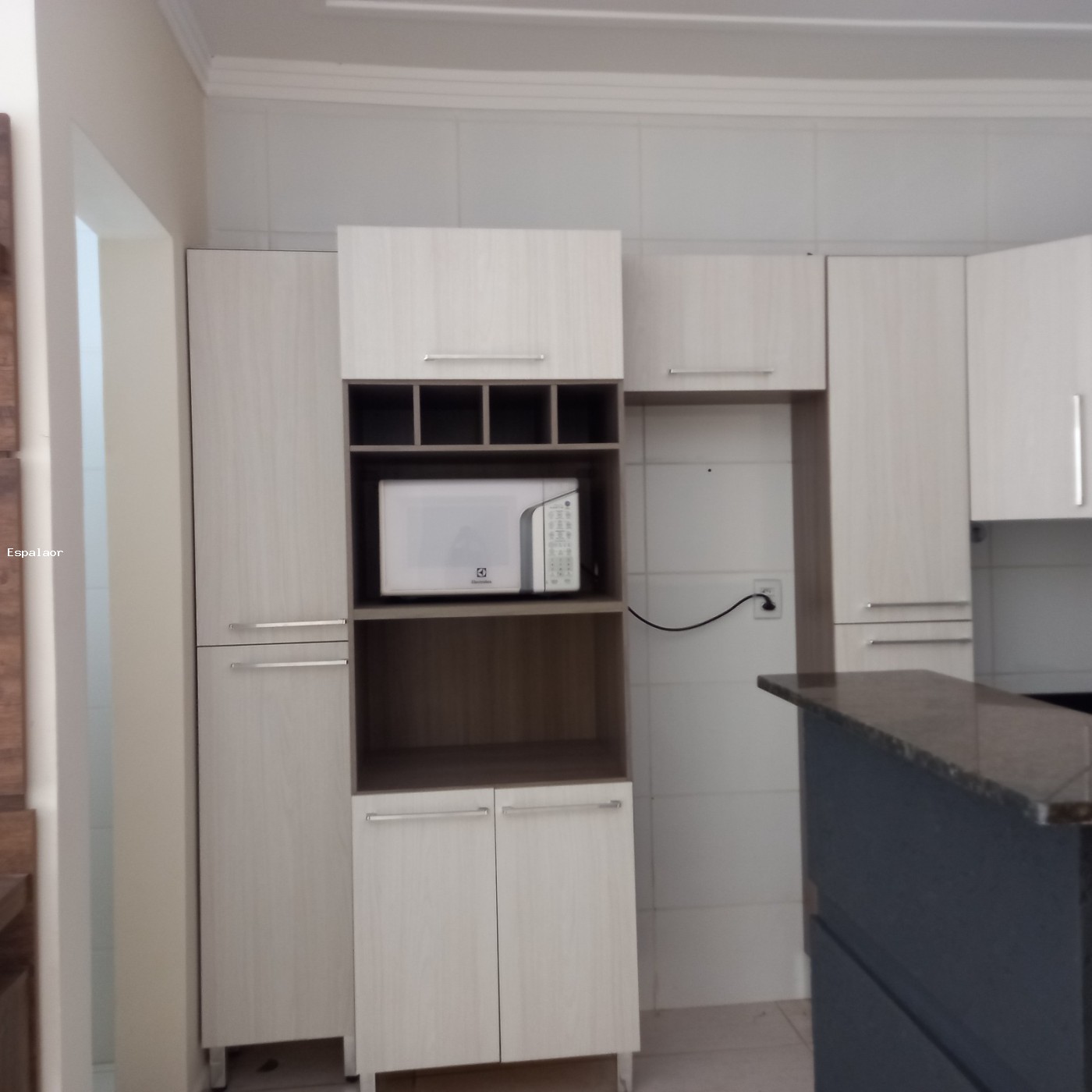 Cozinha com armarios e micrrondas