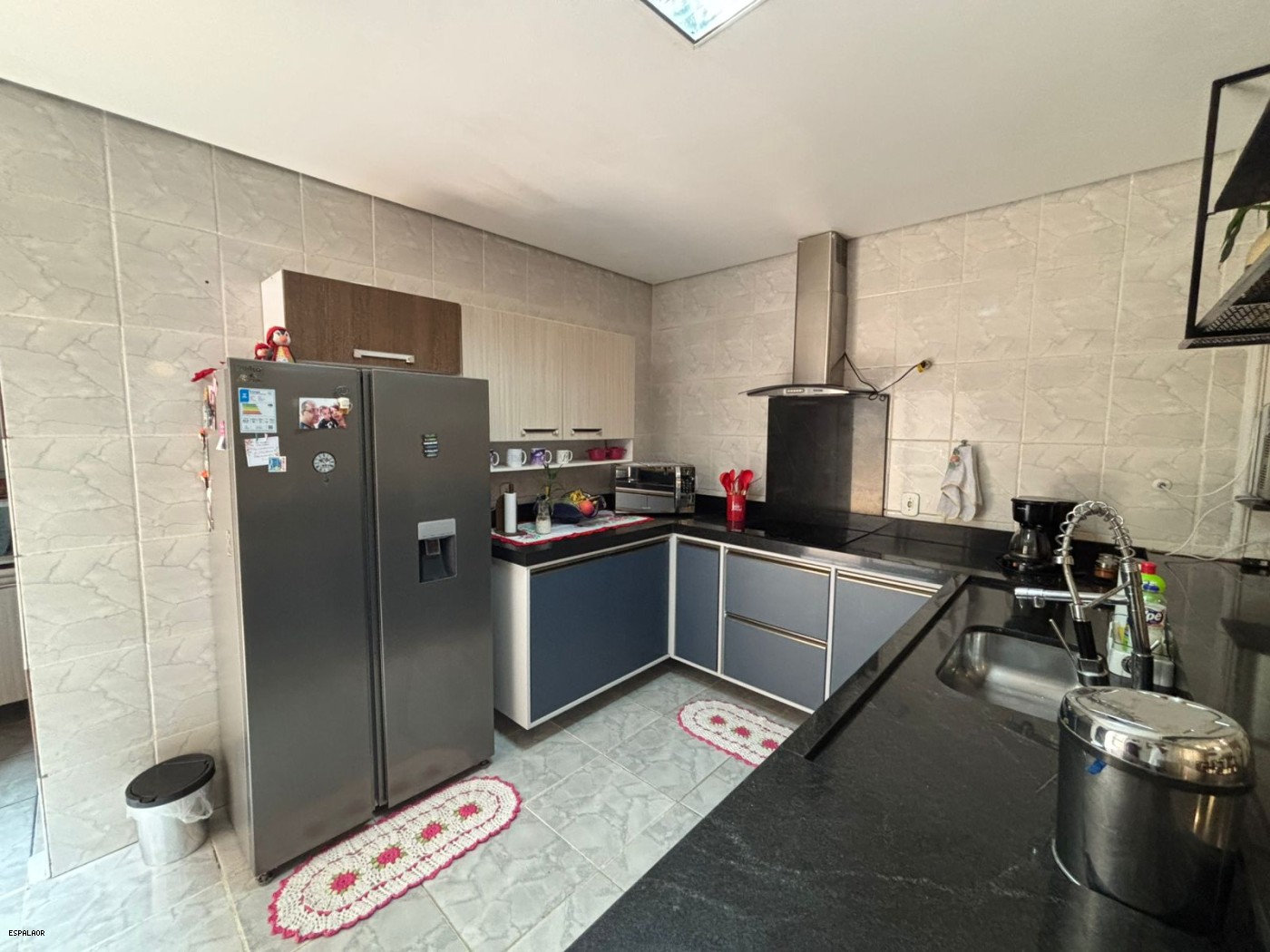 • Cozinha Toda Planejada com balcão e pia em mármores granito preto.