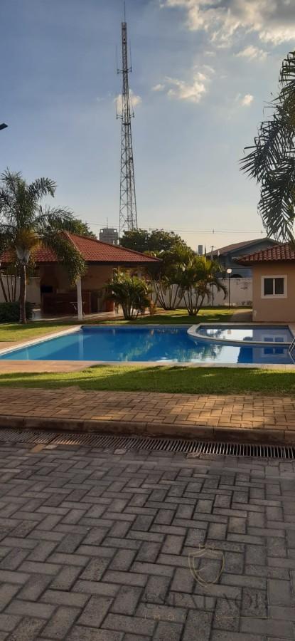 Condomínio com área de lazer completa, possuindo: piscina, quadra de futebol, e salão de festa.